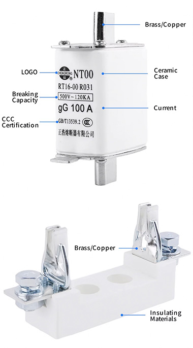 தனிப்பயனாக்கப்பட்ட குறைந்த மின்னழுத்த NT00 AC 160A 500/690V உயர் உடைக்கும் செராமிக் பிளேடு ஃப்யூஸ் ஹோல்டர்