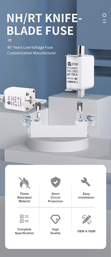 தனிப்பயனாக்கப்பட்ட குறைந்த மின்னழுத்த NT00 AC 160A 500/690V உயர் உடைக்கும் செராமிக் பிளேடு ஃப்யூஸ் ஹோல்டர் தொழில்துறை மற்றும் வணிக பயன்பாடுகளில் பாதுகாப்பான மற்றும் திறமையான சுற்று பாதுகாப்புக்காக வடிவமைக்கப்பட்டுள்ளது. இந்த ஹோல்டர் NT00 பிளேடு ஃப்யூஸ்களுக்கு இடமளிக்கும் வகையில் வடிவமைக்கப்பட்டுள்ளது, இது பாதுகாப்பான நிறுவல் மற்றும் நம்பகமான செயல்திறனை உறுதி செய்கிறது.