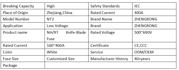 ZHENGRONG NT2 315A 500V ஃப்யூஸ் ஸ்கொயர் செராமிக் ஃப்யூஸ் என்பது சுற்றுப் பாதுகாப்பிற்காகப் பயன்படுத்தப்படும் ஒரு பாதுகாப்பு சாதனமாகும்.